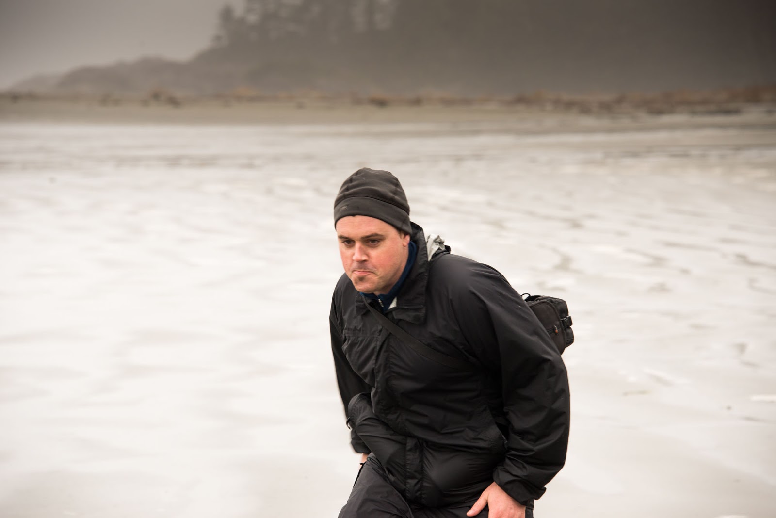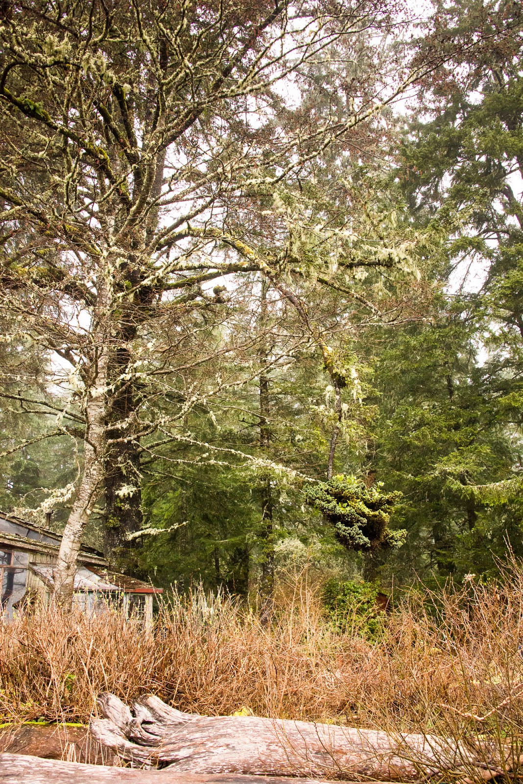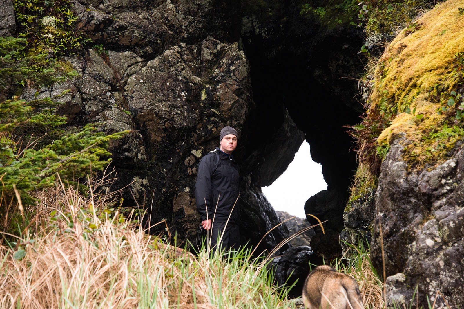 Fortune would have it that the walks along side the cabin, taking no effort to locate. We made our home for two nights at the cabin, using it as a home base for cooking, sleeping and excursions. The first day we ventured to reach Cow Bay but the water on the trails for the headlands slowed our progress so much that we feared not being able to return to the cabin if we continued across the final headland. However, the next day the conditions were much better and most of the water on the trails drained off and progress through headlands was significantly easier. Throughout the day the wild Pacific raged onto the shore, rollers as high as 10′ were evident on the not too distant rocks and close to shore. Making it to Cow Bay was easy but we failed to find the route to Mt. Flores and truthfully it was bathed in fog and cloud and the promise of no view at all (because it is treed at the top) was not enticing us to look as hard as we may have.