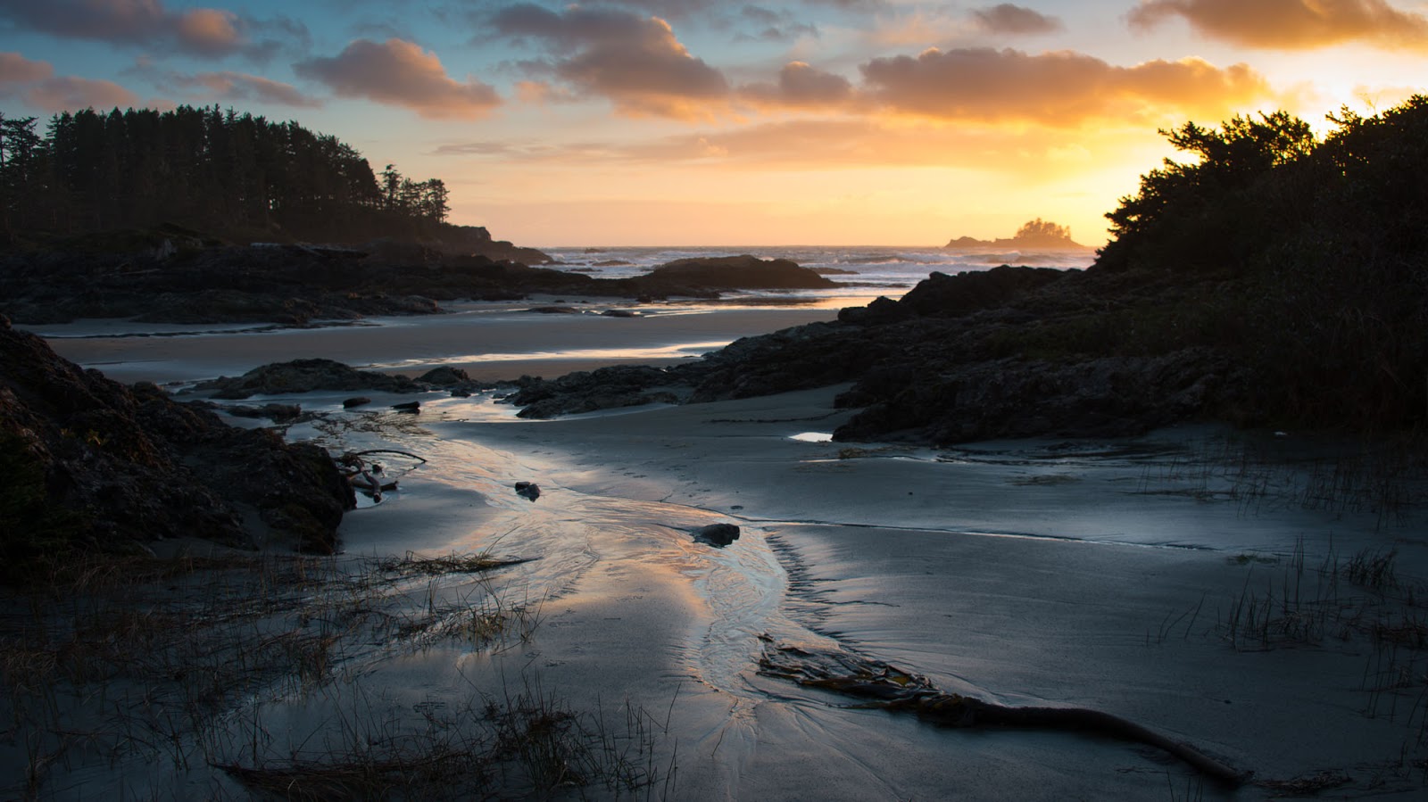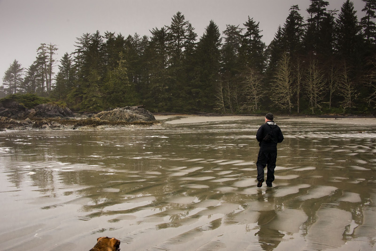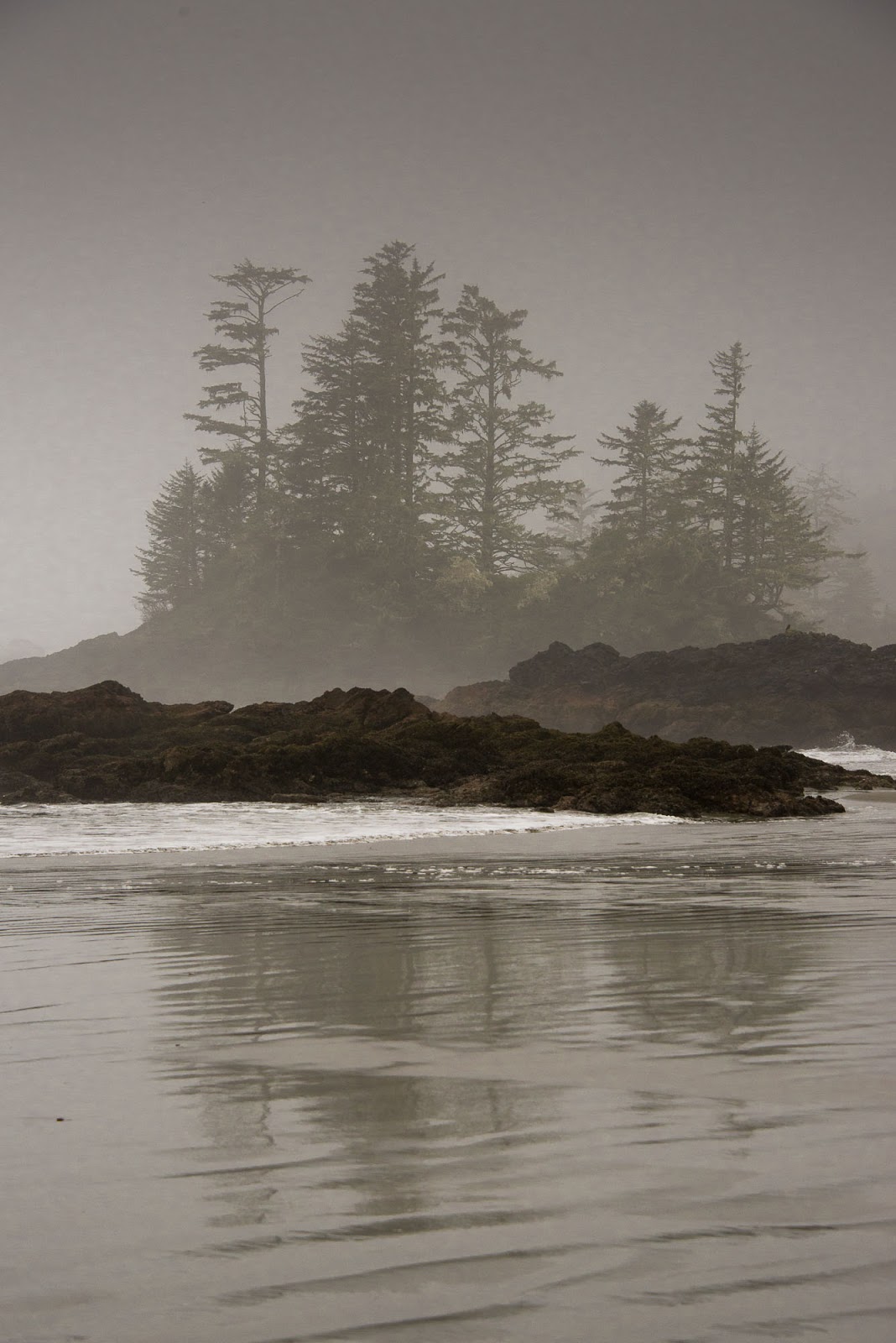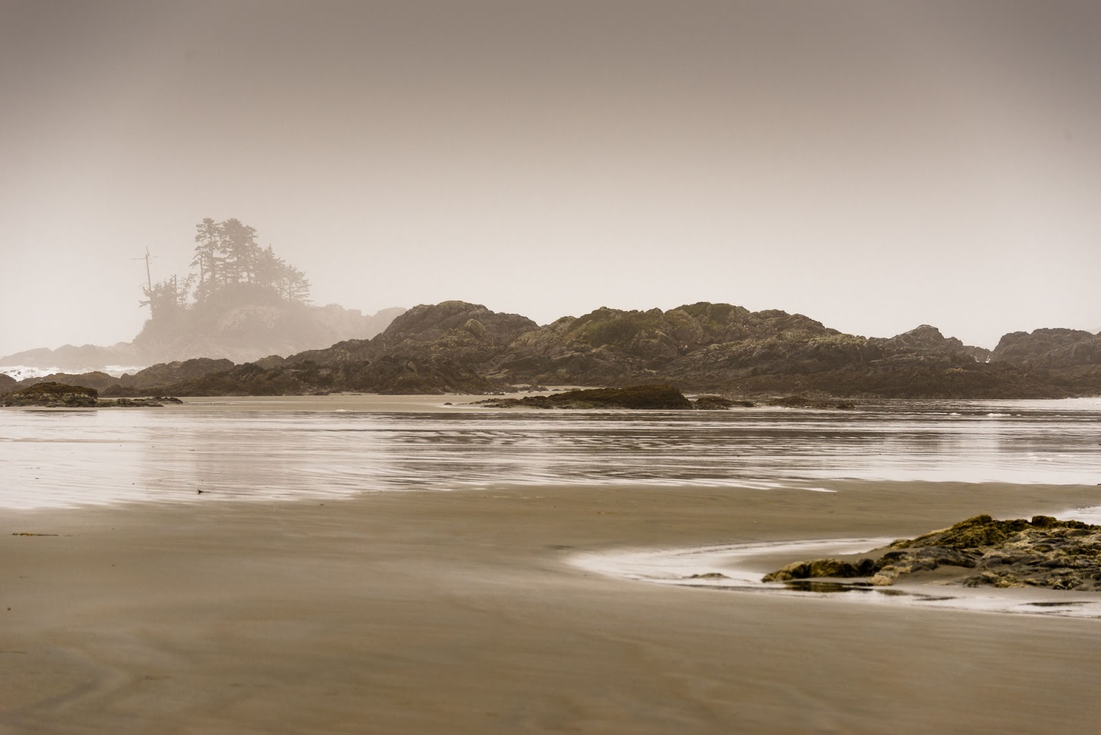 It wasn’t until after dinner on the second night that the first signs of something other than rain became visible, at first just a single blue patch of sky and later a beautiful sunset combined with low tides permitted us a late evening walk on the beach and ample time to explore an islet that is normally cut off from the beach.