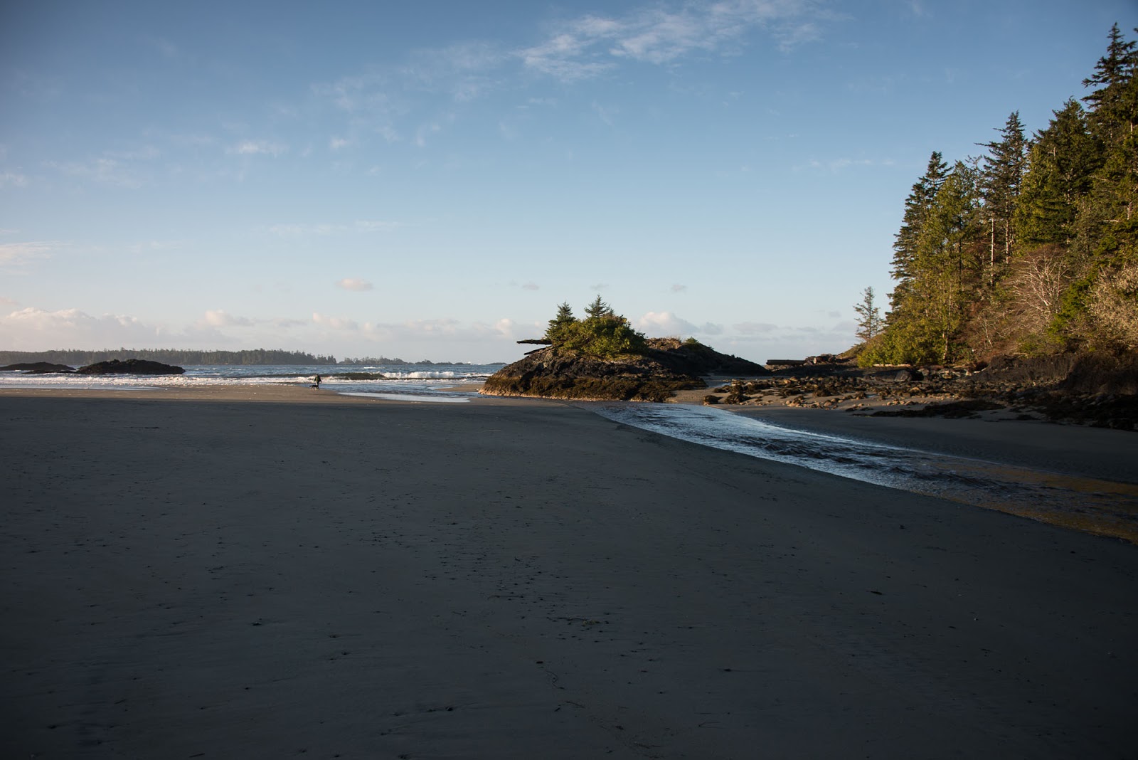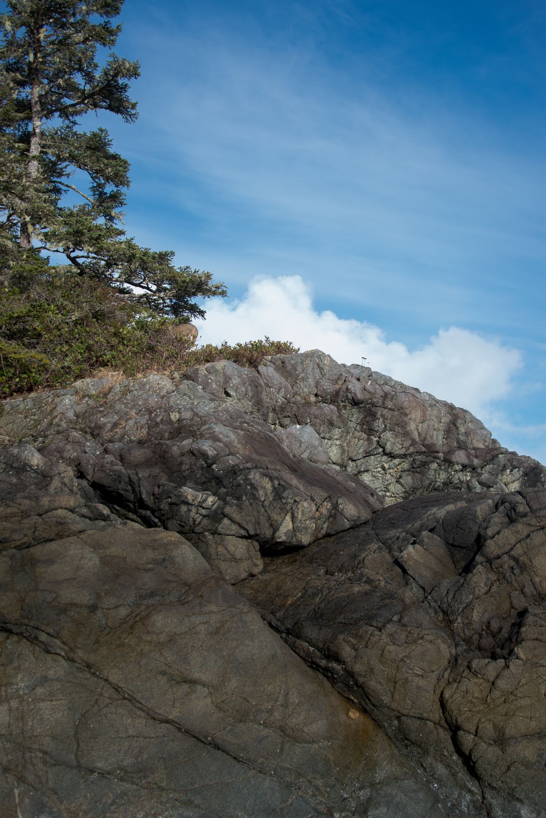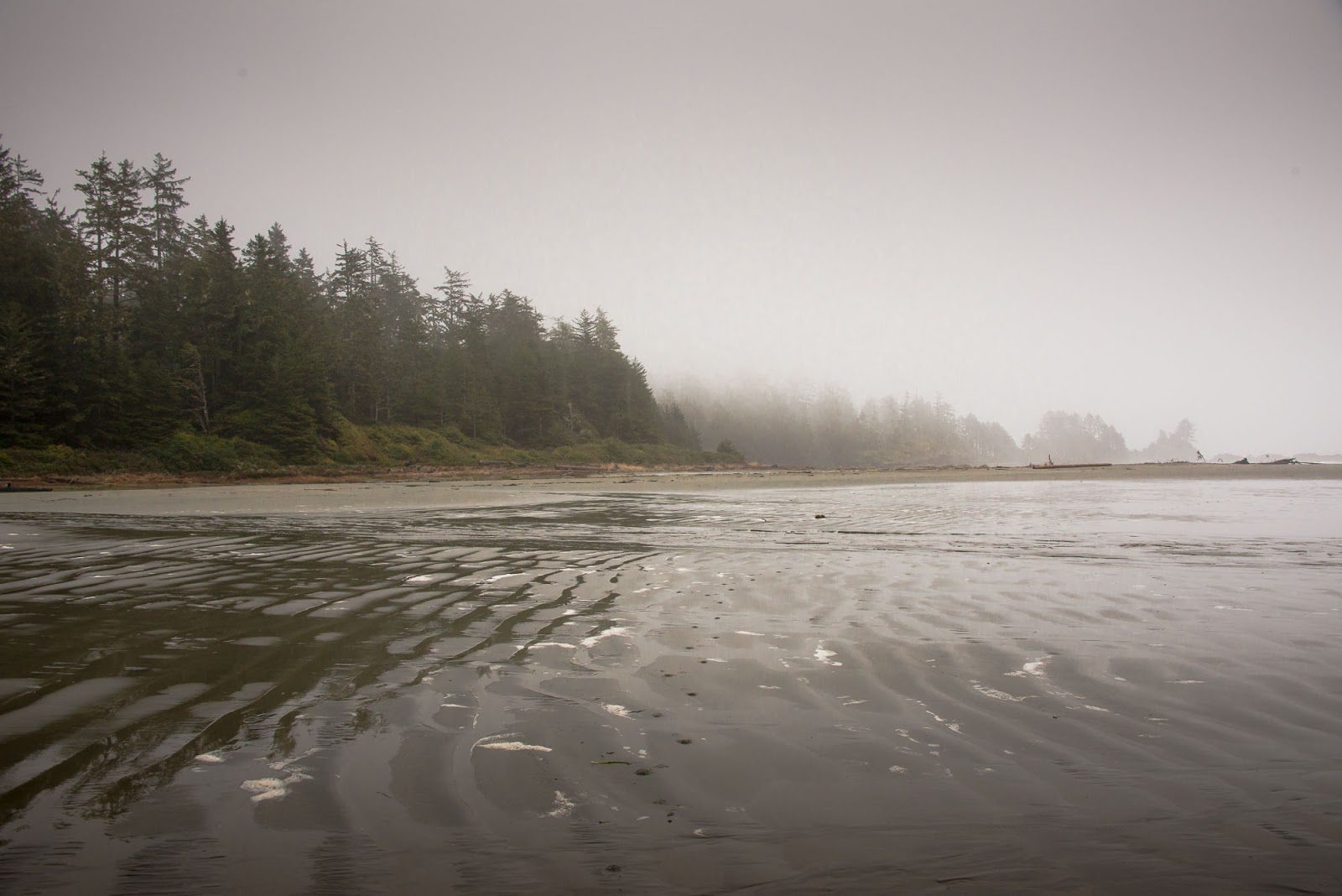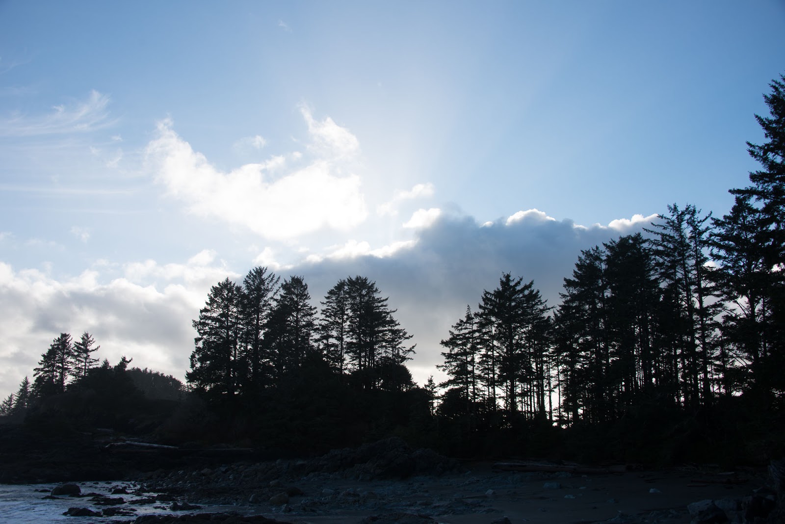 The third day, the trip back to Ahousaht, was gorgeous. The sky was spectacular, with fluffy white cloud formations and excellent blues and a general lightness in the air. These conditions accompanied low tides that meant we were able to walk the beach almost the entire way with the warmth of the sun, cutting travel in time in half.