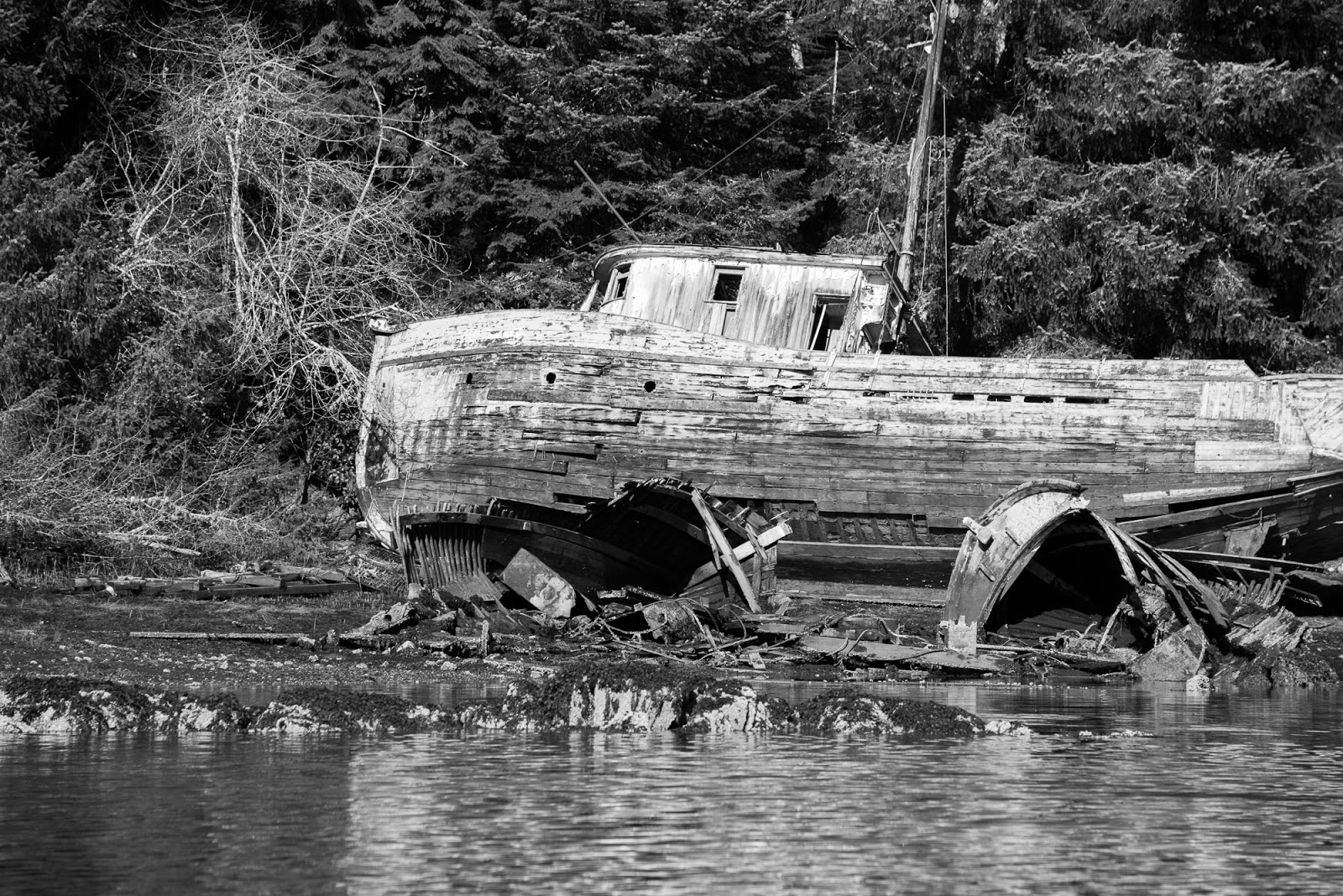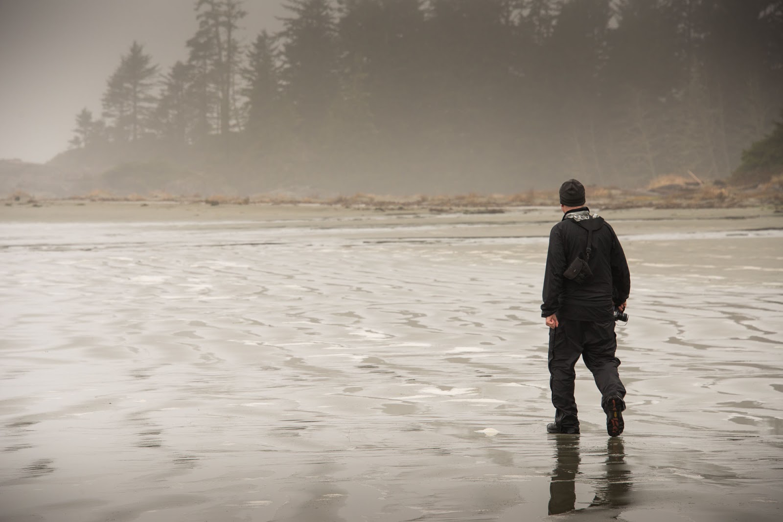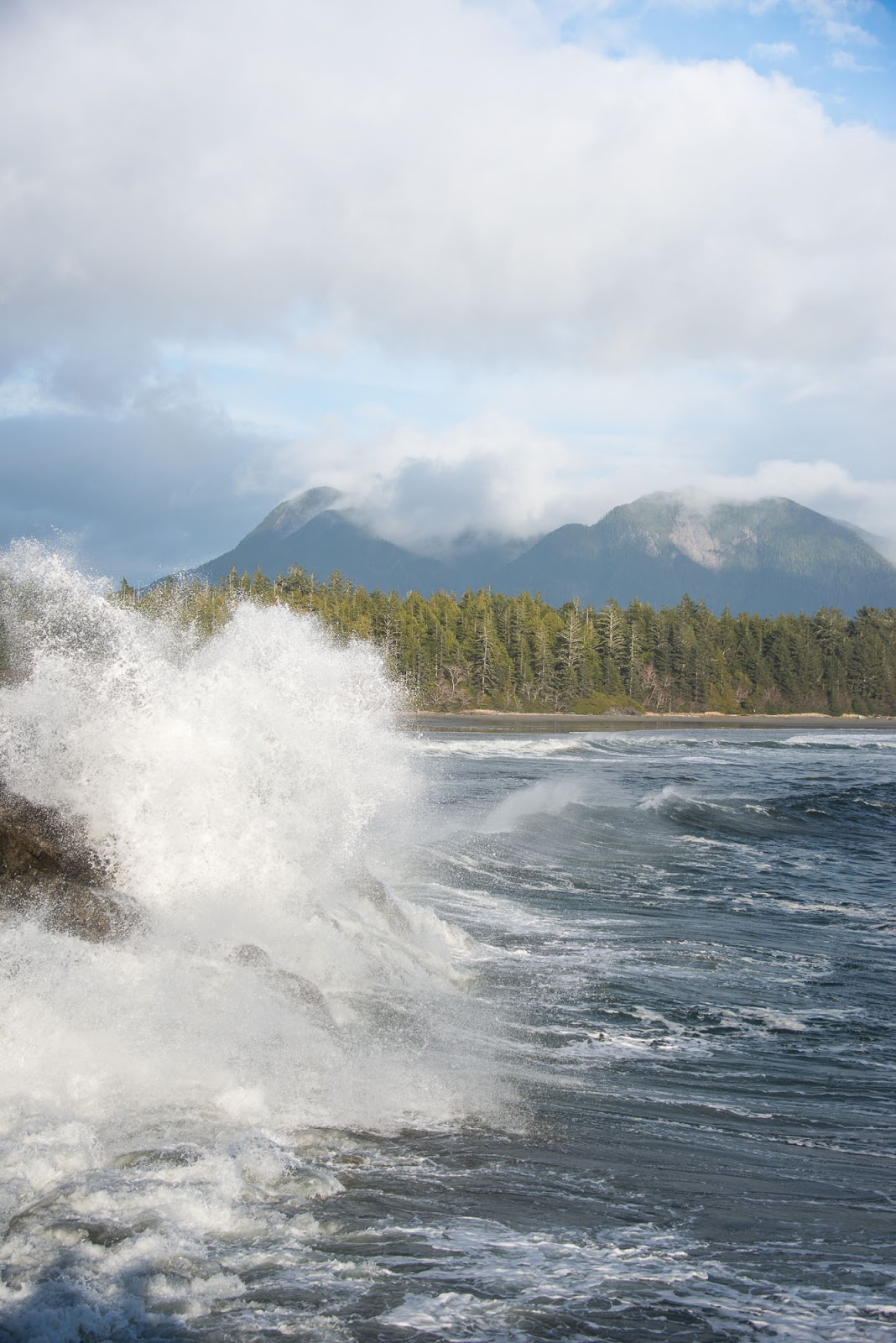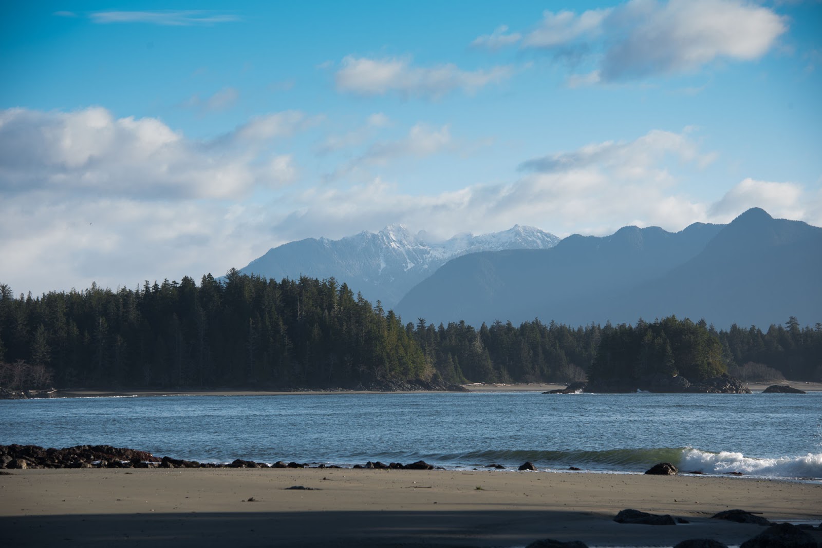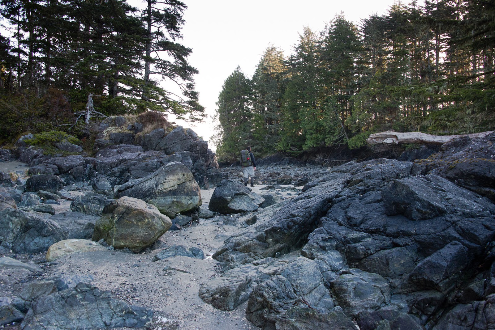 The third day, the trip back to Ahousaht, was gorgeous. The sky was spectacular, with fluffy white cloud formations and excellent blues and a general lightness in the air. These conditions accompanied low tides that meant we were able to walk the beach almost the entire way with the warmth of the sun, cutting travel in time in half.