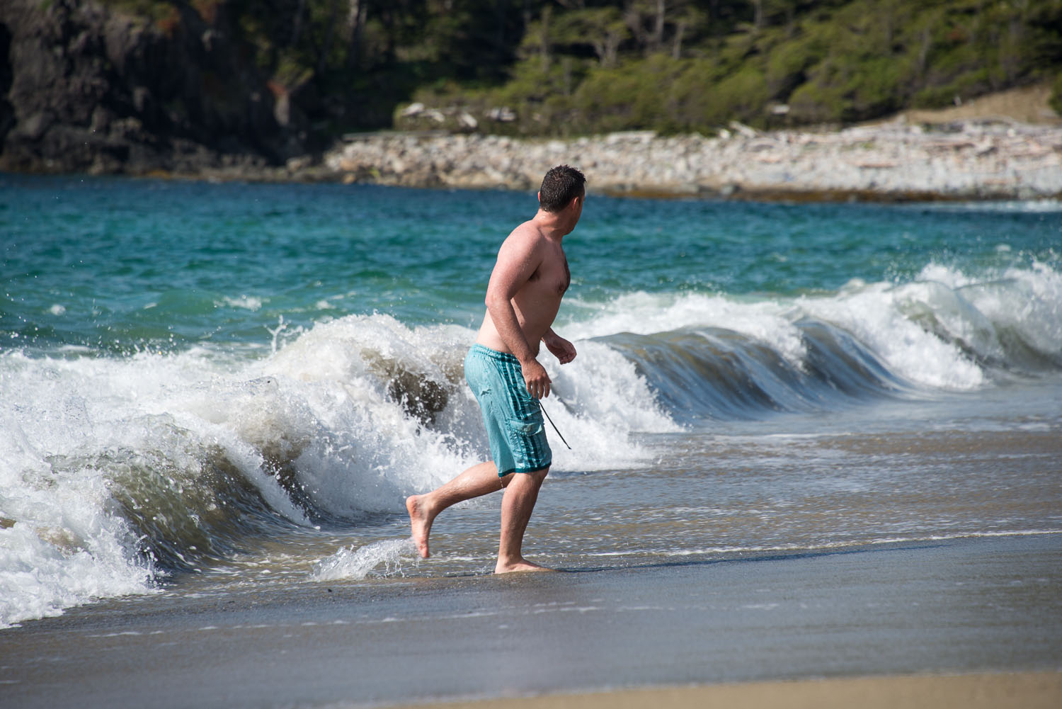 Pachena Bay is amazing. It is the launching point for the northern end of the West Coast Trail in the Pacific Rim National Park Reserve. The beach is sandy and several kilometers long with dozens of access points from campsites to the beach. Our lady friend went to bed shortly after arriving, somewhere around 9pm, so Michael P and I broke out the portable Settlers of Catan and played a round of that. Afterwards we hit the fires on the beach looking for a group to sidle up to. Everywhere we went we were met by other campers enjoying the misty weather and good company. Around midnight it started to rain, that is when we retired to our tent, narrowly avoiding the rain. Tucking in for the night we had a great sleep before waking early in the morning and packing up.