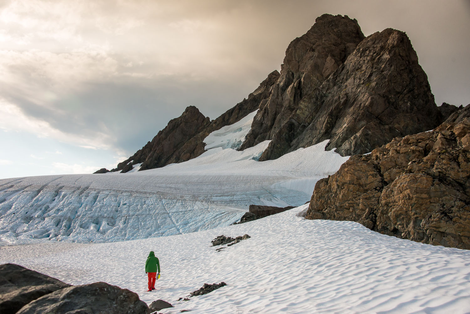 Ryan walking toward the Upper Rugged Glacier, Rugged Mountain in the background