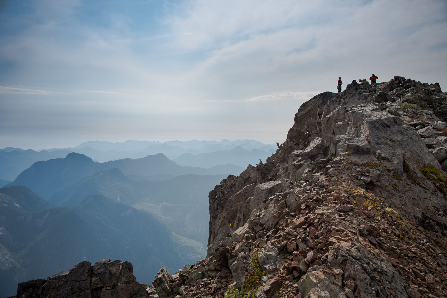 Unfortunately, by this time, each of us had exhausted the two or more litres of water we brought with us and there was nowhere to refresh our supply.  The hike became a slow march up the ridge and sustained ourselves by eating the ample numbers of delicious alpine blueberry and huckleberry. Each little berry popped with a satisfying burst of precious water as I popped them in my mouth.