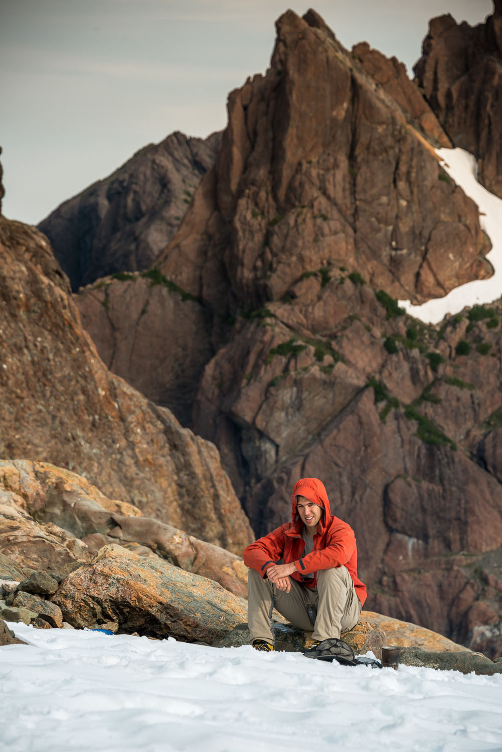 Late in the evening, while most of us were enjoying our bagged dinners, Rory and Ian arrived. They smoothly came up over the lip of the col and appeared to be in good spirits, considering the mess of bush they just came through. With all the climbers now present, we made plans for Rugged Mountain, for the next day.