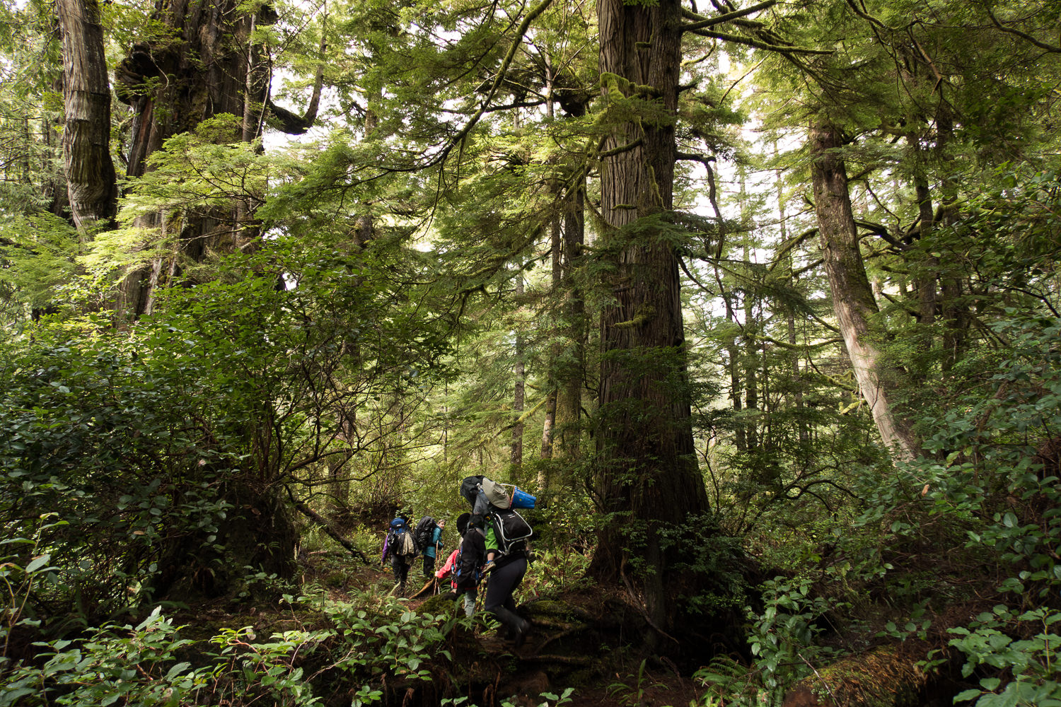 This Easter I picked the Wild Side Trail as the destination for Hemingway’s first backpacking trip. The 11 km of walking combines easy beach walking and a small mount of forest walking, over headlands. It’s satisfactorily long, worth the effort. It features beautiful west coast rainforest and offers opportunities for wild life encounters. Further, the wilderness is old-growth forest; one of the few areas left on the west coast. The route brings hikers past dozens of forest-giants, moss so thick you’ll want to lie down and sleep forever, and at least a few Culturally Modified Trees. Adding tot he fun, I brought the Island Mountain Ramblers with us. In total 15 people hiked and camped, including three children.
