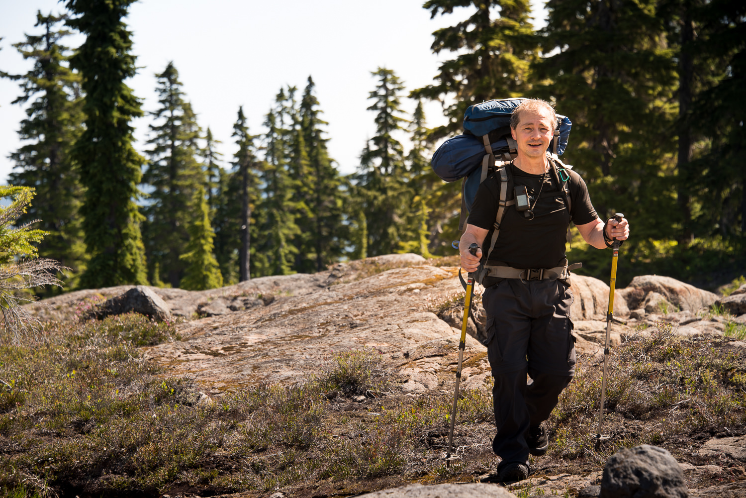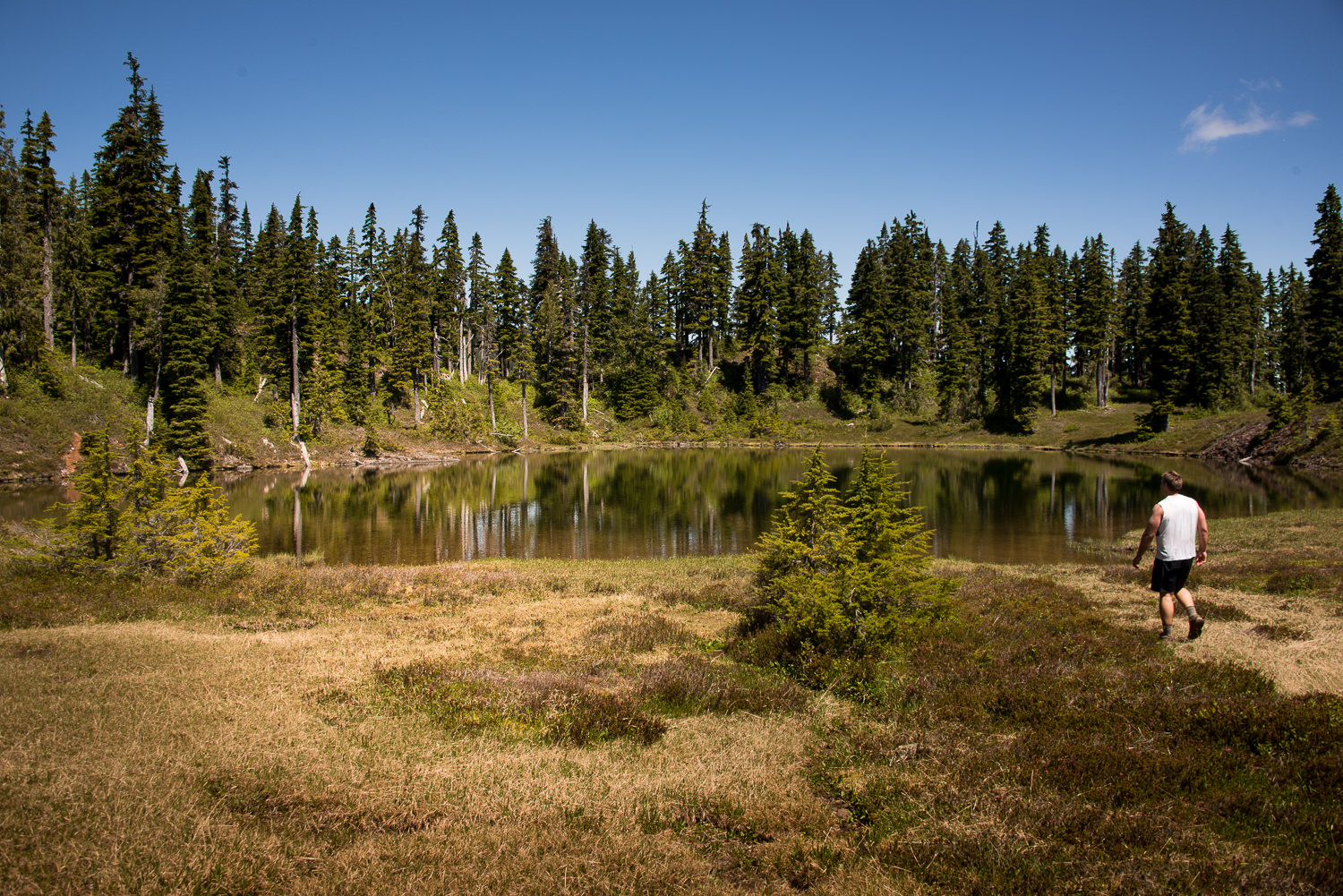 | Phil, pack off moving to the waters edge at Tatsno Lake |