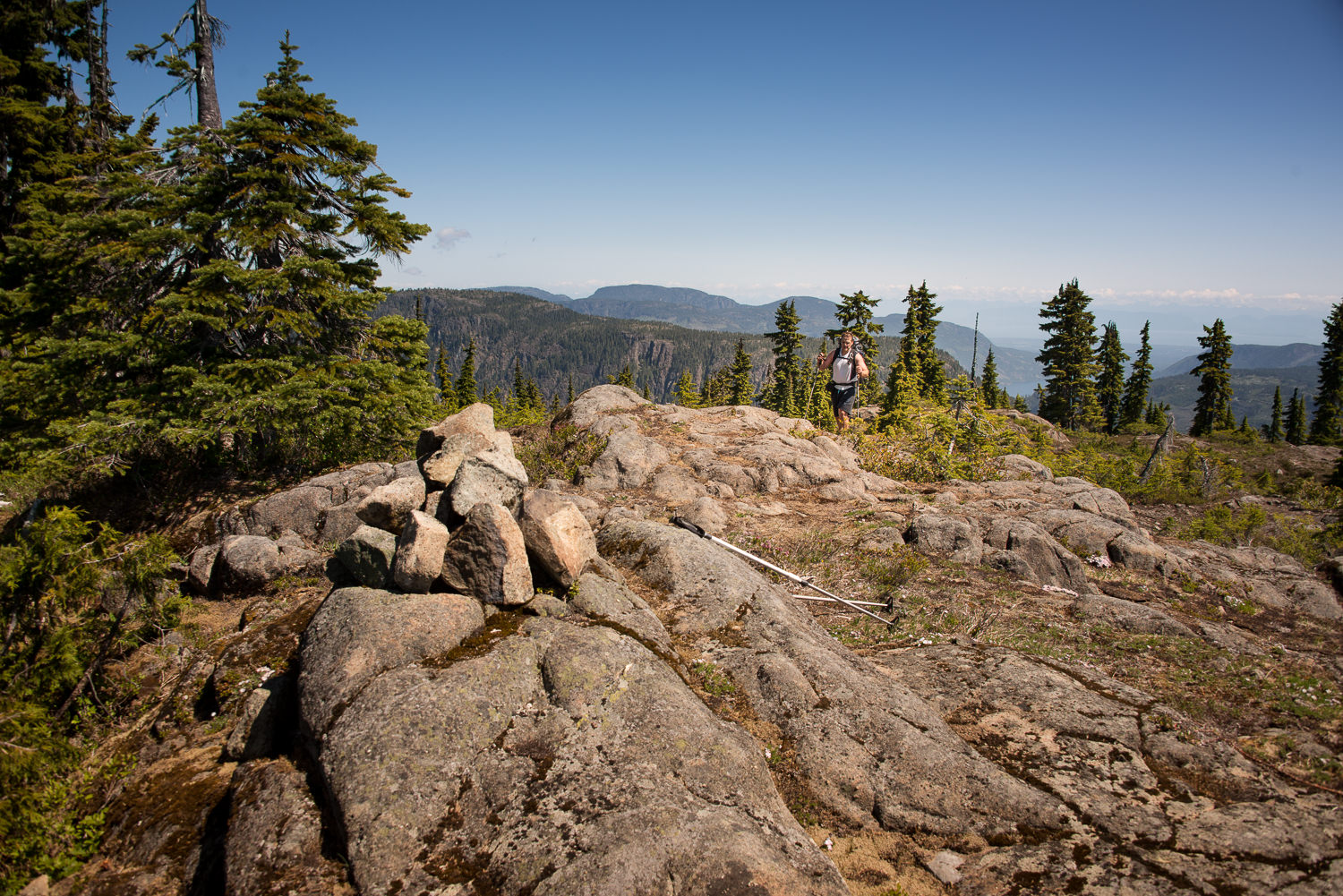 The route to Kookjai Mountain is about 7 km, sees about 1000 m of elevation gain and tooks us 3.5 hours to hikes. It’s easy enough to follow, if you have keen skills of observation, there are lots of flags and the route is mostly well booted. The toughest section of the hike is near the beginning through a regrowing clear cut. Once at the clear cut the hiker only needs to look up to the skyline and pick the large notch at the top. Following the hill down it is possible to spot several markers indicating a marked path through this tough steepish section.
