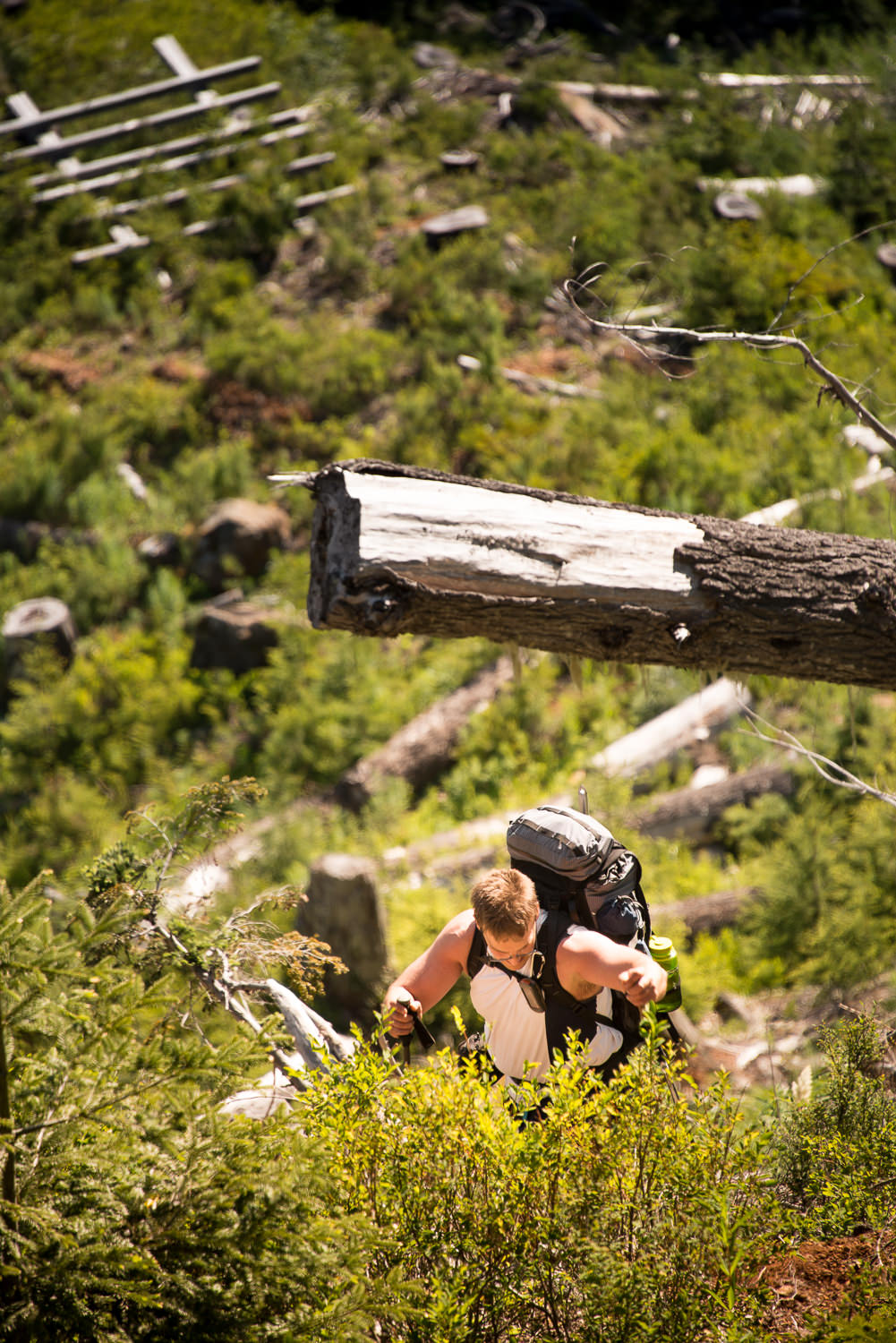 | Phil hiking up through the clear-cut en route to Kookjai Mountain |