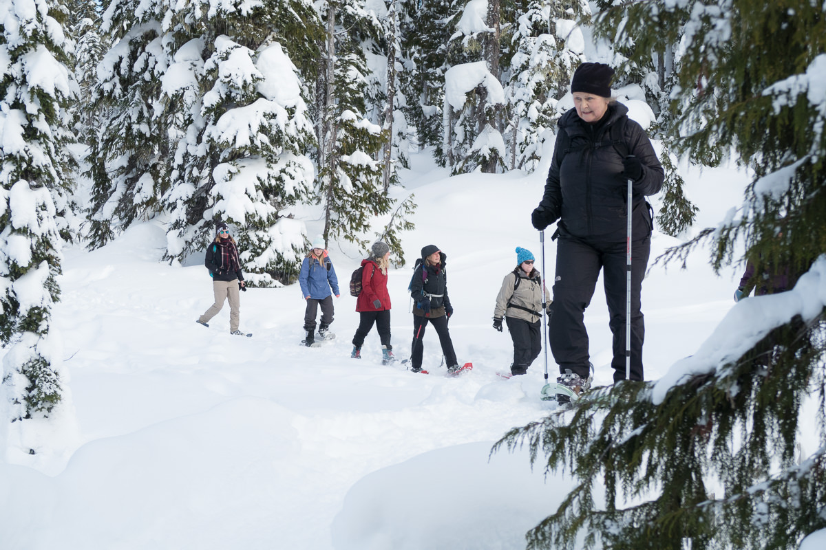 A large group of Island Mountain Ramblers and guests assembled in the parking lot of Raven lodge, mid-morning of January 7th. The wind in the parking lot was frigid and the thermometer in my car read temperatures close to -10 C. In keeping with many of the family/novice snowshoe trips I lead, I took a long time getting my seld ready.