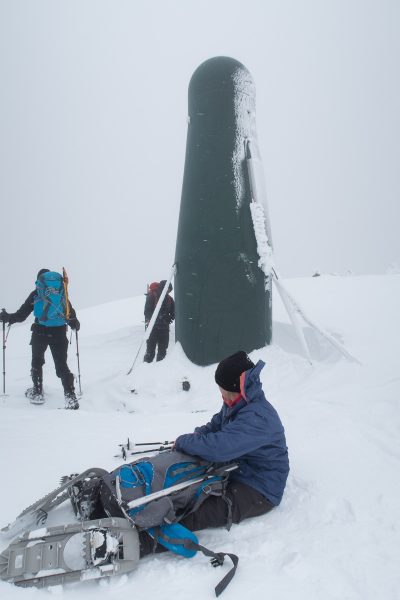 We lingered longer than I think most of us would have liked, huddling at the repeater beacon to take shelter from the wind. Despite the near-total lack of visibility, we enjoyed the moment and revelled in the accomplishment of the day.