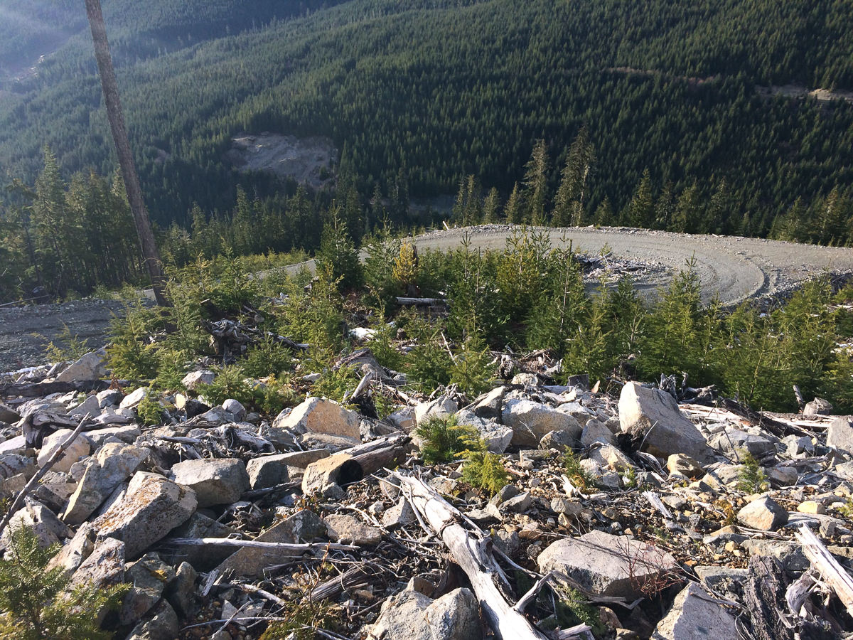 Waring Peak, along with all the peaks in the Sutton Range, is a long drive from Nanaimo, with well over three hours on the highway, and then more time on the backroads between Gold River and Woss. To save a long morning drive, the four of us left Nanaimo on Saturday afternoon to camp near the trailhead. Phil and I drove together. It was a long but uneventful drive, and we arrived at Waring Road around 5:00 pm. We used the ample time before dark to do some recce. We drove up the steep road, looking for the logging spur that would launch the next day’s adventure, and maybe host a camping spot. Around 600 metres, we reached our spur; the good road hairpinned and continued up, but we broke off on to an older, overgrown spur.