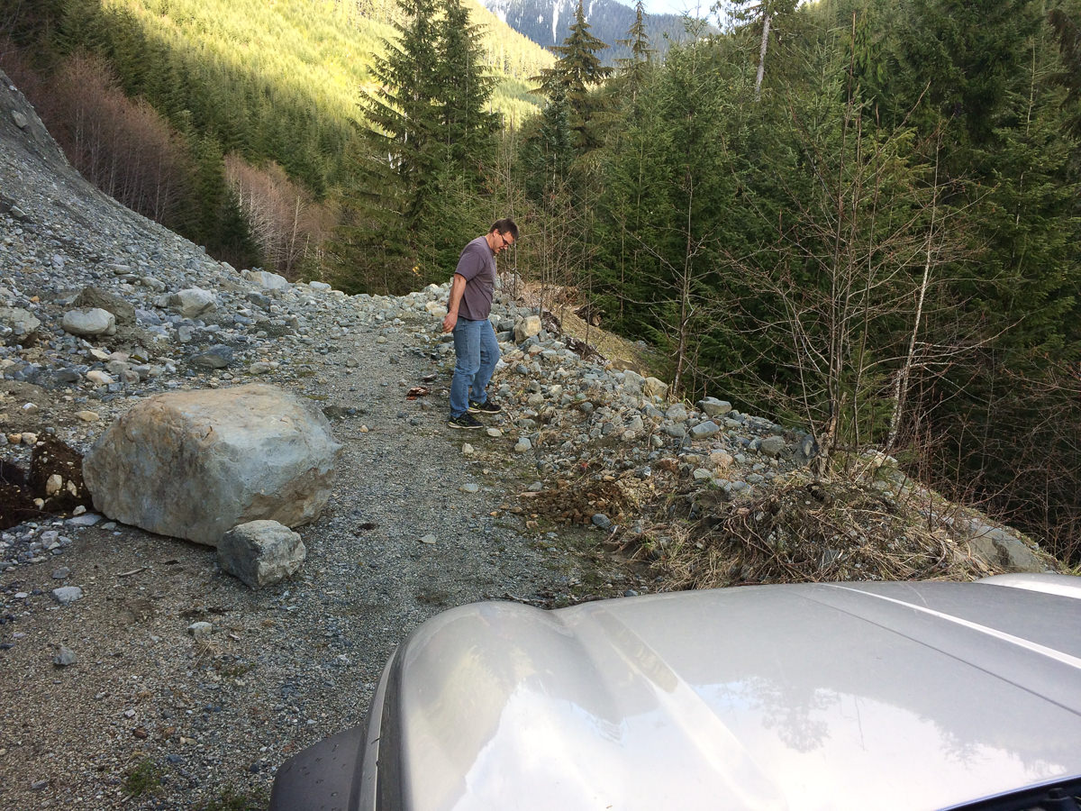 We arrived back at the car, tired and eager to get home. We routed north toward Woss instead of south to Gold River; the road is in better condition, allowing us to cover the terrain quickly. Plus, we detoured at the logging road up to Mount Cain, to check the road conditions for Mount Abel. Good news: we were able to drive right to the start of the walking route!