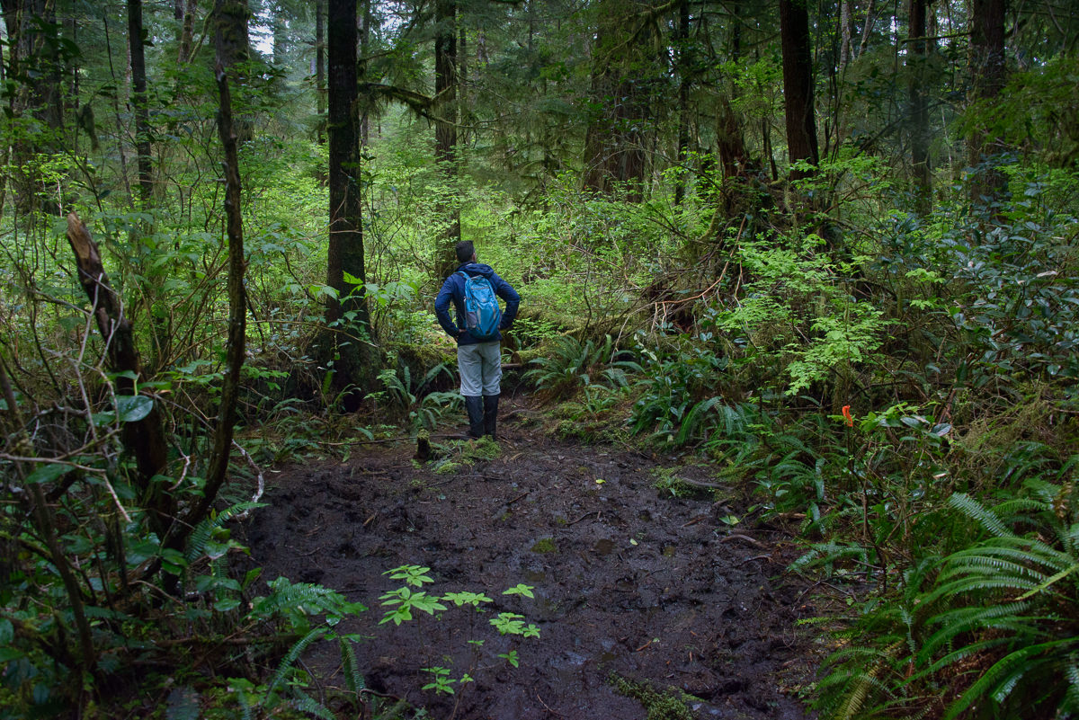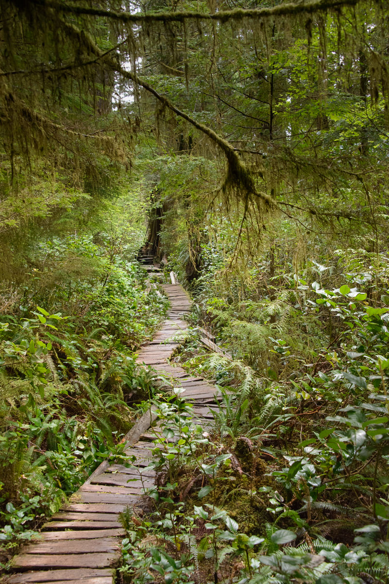 The dim early morning light leaked into my tent, waking me. For a while, I lay under my sleeping bag trying to get back to sleep, but I soon gave up and decided to pack instead. I was eager for the second part of our trip: a hike around Big Tree Trail, a short loop through the old-growth forest of Meares Island, and then the trip home.