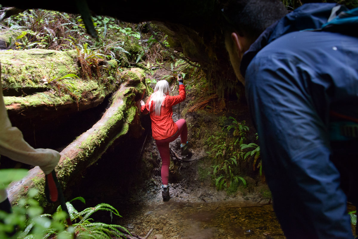 The return trip followed the same route, but it was on the downhill that I noted most of the greatest features of this trail. Walking down the valley, we could see deep into the forest. The bright light of the day penetrated the heavy canopy, casting green hues across the forest below. As we descended, I could hear the tintinnabulation of voices echoing up through the forest. In time, we would pass several groups of hikers on their own adventure to the summit. Obviously, the trail and hostel are popular destinations for adventure seekers.