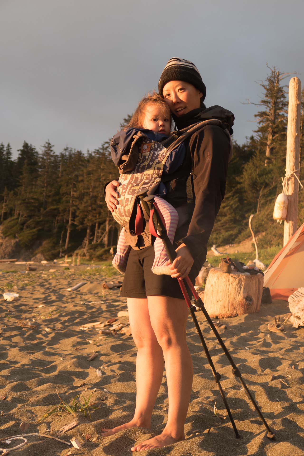 The short hiking distance was an important factor in choosing Tapaltos as our destination, Hemingway, because this was your first trip with the backpack I gave to you on your birthday. Our trip depended on your ability to carry your clothes, sleeping bag, and sleeping pad (under eight pounds). Between all the camping gear, food and snacks, and Octavia’s bottle, milk, and diapers, it was nearly impossible to fit the volume of equipment into just two backpacks. Mom’s 60-litre bag billowed out from her body– thank goodness it only weighed twenty pounds. While Hemingway walked the whole route, I carried you, Octavia, in the backpack, with all the dense small items in the storage compartment below you. You might not be two years old yet, but you’re already thirty pounds– the combination of child and pack weight came in just over fifty pounds. I haven’t carried that much weight since before I dislocated my patella in 2013; one more reason I was happy the distance to the beach was short!