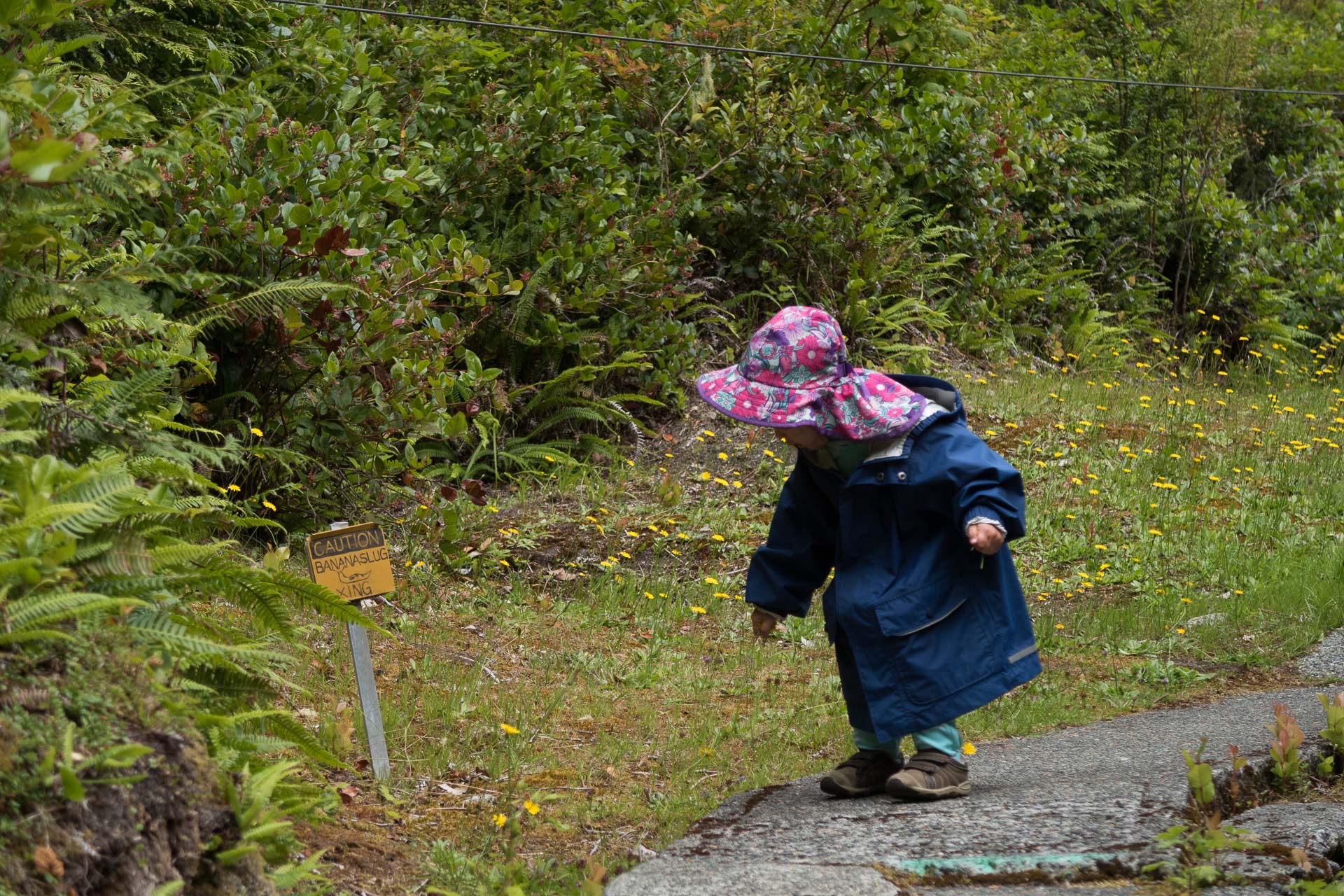 I carried sleeping Octavia in the pack, while Hemingway zipped along the trail poking at every bug and berry. It wasn’t until we started the climb to the lighthouse that Octavia got to put her feet on the ground and stretch her legs. She pulled at the flowers beside the path and happily made her way up to the lighthouse.