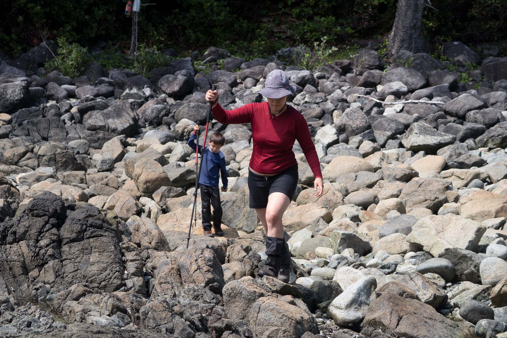 Taking the whole family on a backpacking trip is a significant milestone, and it was an excellent way for all of us to spend two days together in the middle of July. Getting everyone involved with the adventure is exciting, but I felt anxious thinking about the risks involved … much more concerned than when I go on my own. To help manage the risk, I chose a trip to Tapaltos Bay with a daytrip out to the Cape Beale lighthouse. Hemingway, you and I have done this trip by ourselves before, and a few times with Mom; but this was our first family trip since Octavia was born in September 2016.