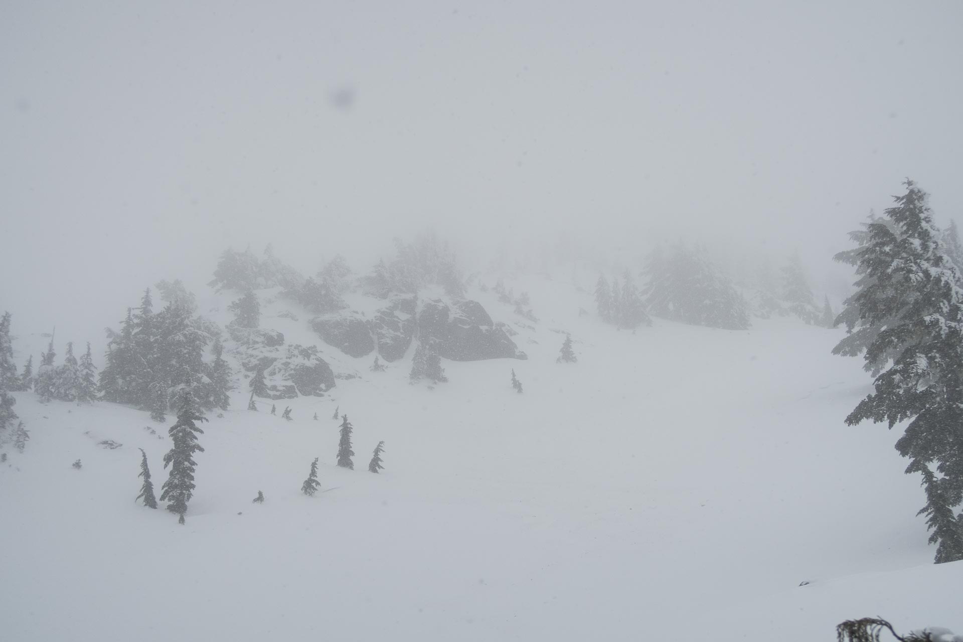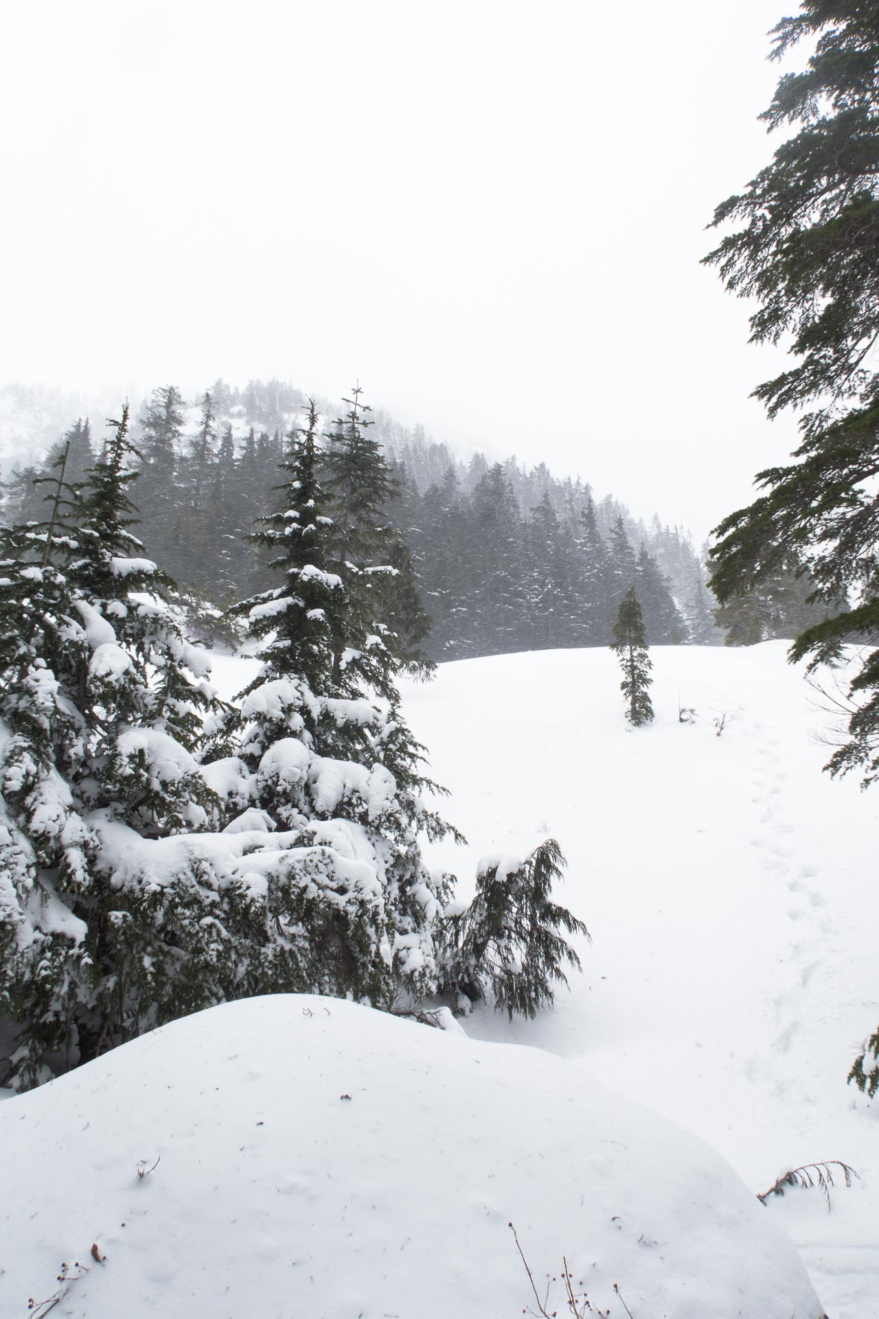 As we turned to head back to the car, the snow started falling faster. Within a short time, our approach route was obscured below the freshly fallen snow. By the time we were back at the car, a good four inches draped over the body.