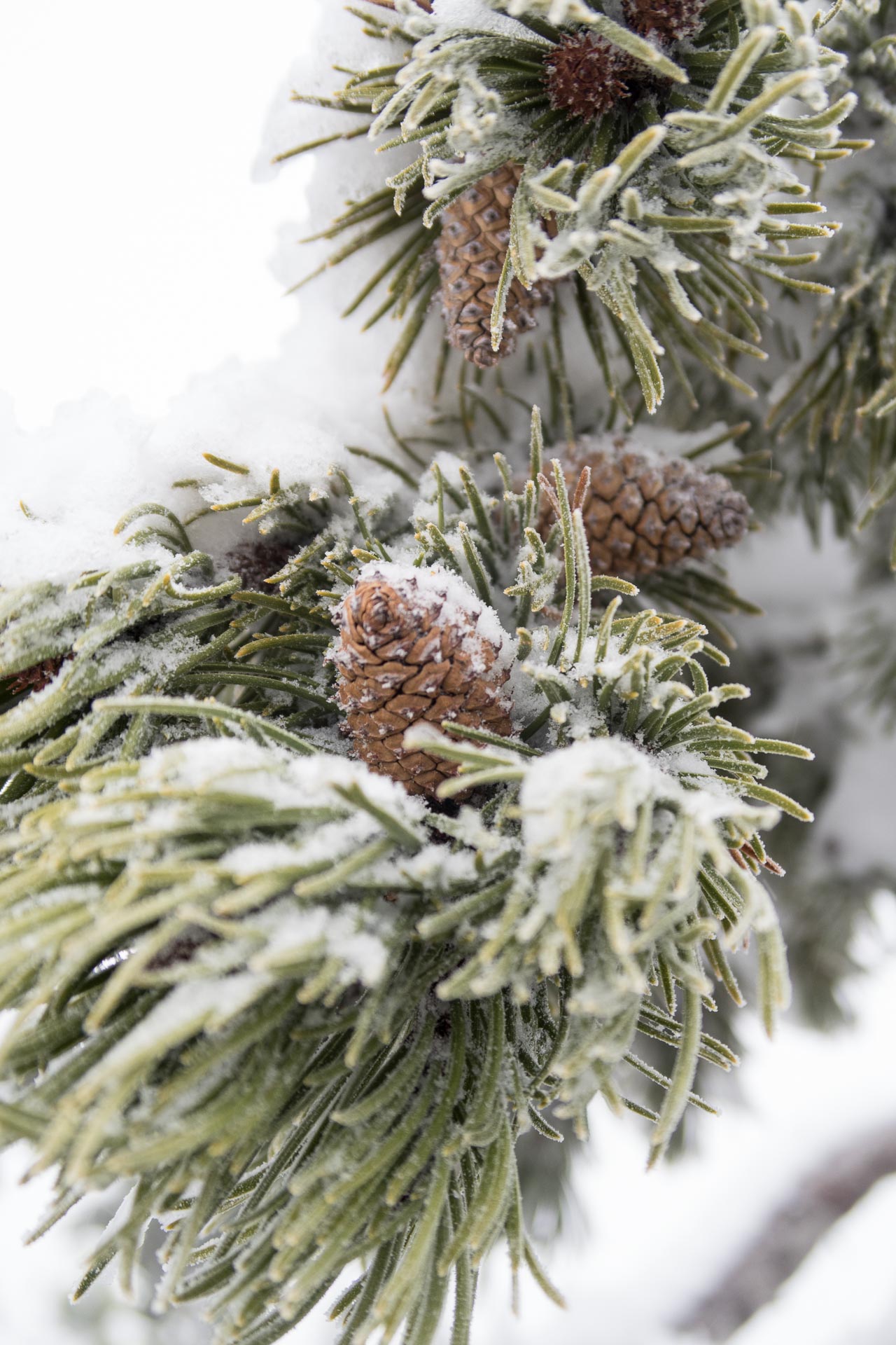 - a light dusting of snow on pine cones