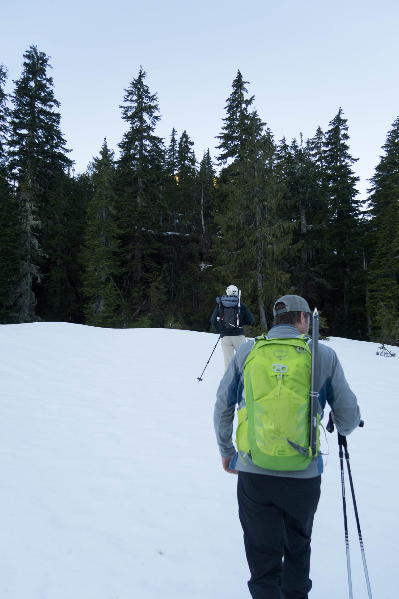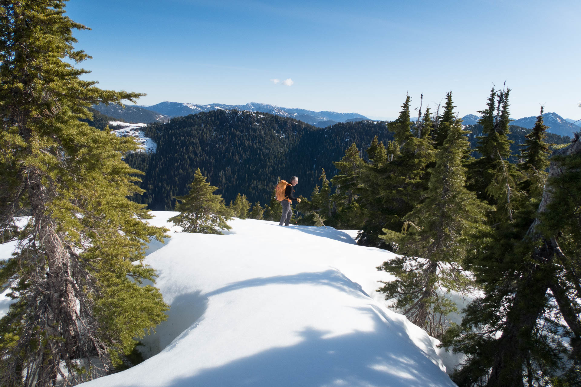 While some mountains are heinous bushwhacks, and others require long logging road approaches, Mount Olsen is none of these. All along the Corrigan Main the land is laid waste by heavy logging, and the myriad of logging roads crisscross the slope creating a maze of roads that push high up the side of the mountain. Although we came ready for a long slog along snow-covered roads, we discovered the roads clear; a benefit of an early spring heatwave.