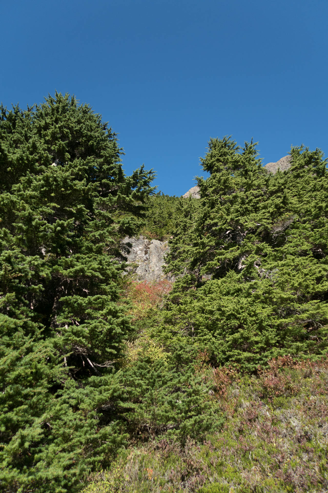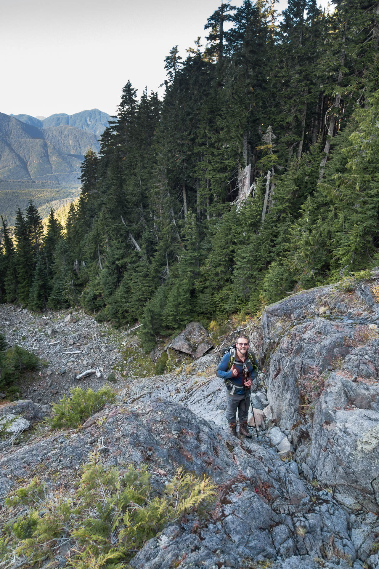 For the most part, we followed the route provided by Martin on Summit Post. The lower portion of our path was filled with wind blowdowns and terrain difficulties that, at times, forced us to wade through unyielding thickets of stunted evergreens. But I don’t want to focus on the worst parts of the trip, because there is plenty of lovely mature forest and open hiking, after a five-kilometre logging road approach.