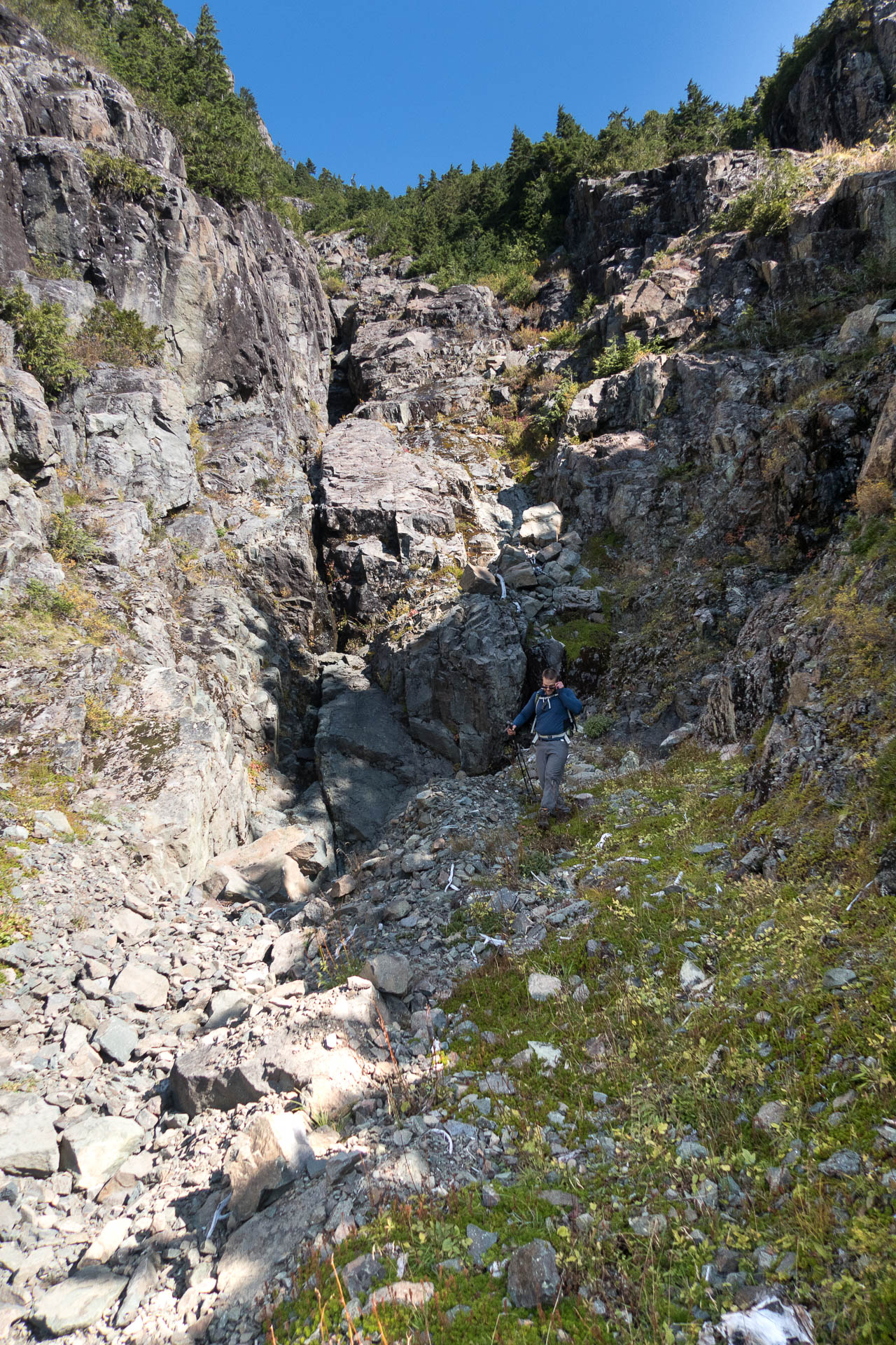 - Though we went up the gully, the less bushy route would be to cut hard right into a short bushy section and easier hiking.